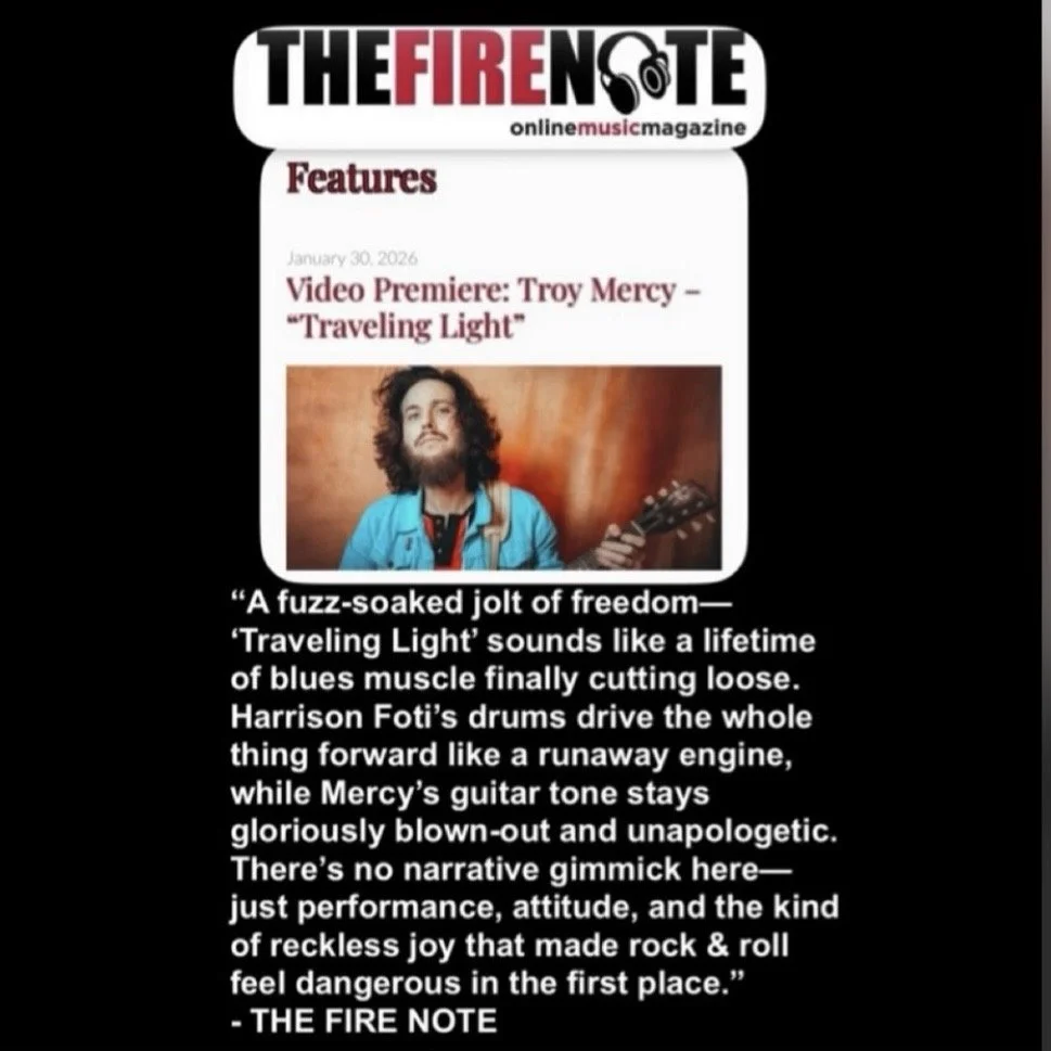 FULL REVIEW: https://thefirenote.com/videos/video-premiere-troy-mercy-traveling-light/Music Savage